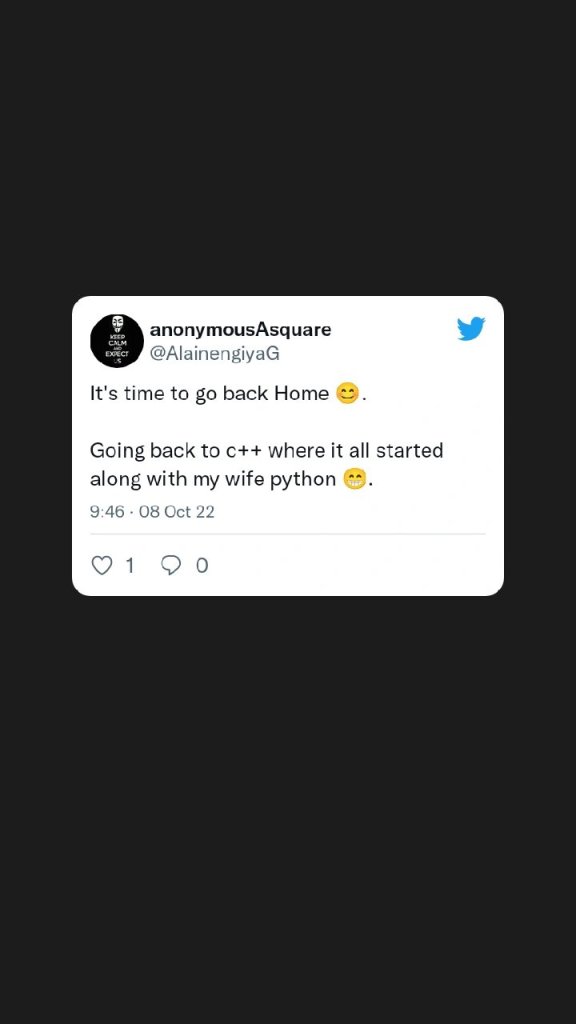 Right now I think if I want to do alot of more complicated and fast stuffs I have to go back home (c++), python is a very cool and easy programming language but it has its disadvantage, it’s slow. If you want to create something big and fast you can’t really work python, you have to go to the complicated language (c++) that nobody wants to code with.